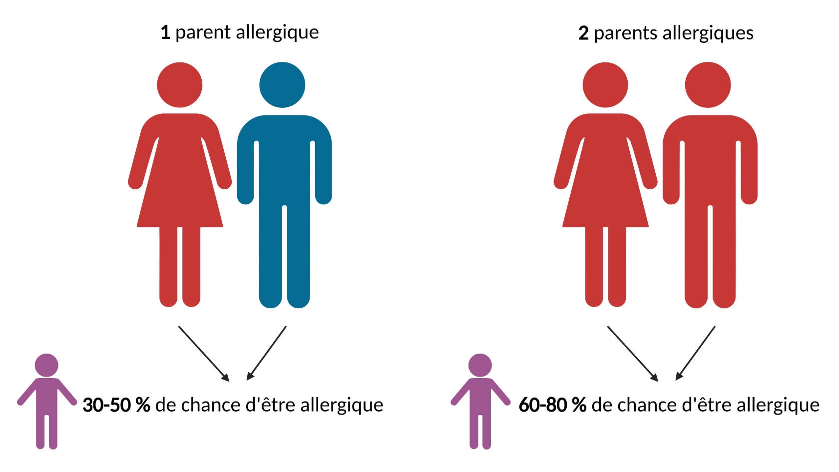 La génétique est un facteur de risque important pour le développement d’allergies alimentaires. Ce qui est transmis avec la génétique c’est le risque de développer des IgE non spécifiques contre ce qui nous entoure comme les aliments ou le pollen. C’est pour cette raison que les enfants n’ont pas toujours la même allergie que leur parent.