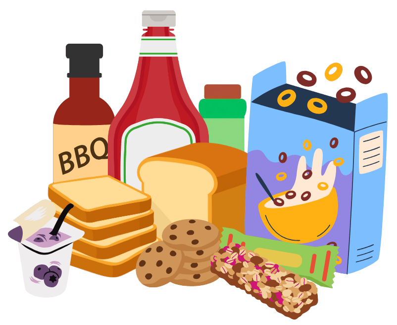 Quelques exemples d’aliments transformés qui contiennent des sucres ajoutés: