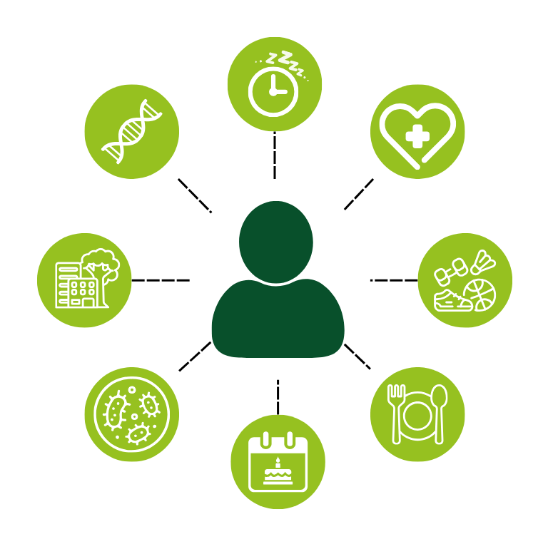 Chaque personne a un code génétique unique composé de séquences d'ADN qui déterminent ses caractéristiques physiques et biologiques, comme la couleur des yeux, et bien plus! Ce code est comme une recette spéciale qui fait de chaque personne un être unique. Grâce à la génétique, on peut comprendre comment notre ADN influence notre réponse à l’alimentation et ainsi notre risque de développer certaines maladies.